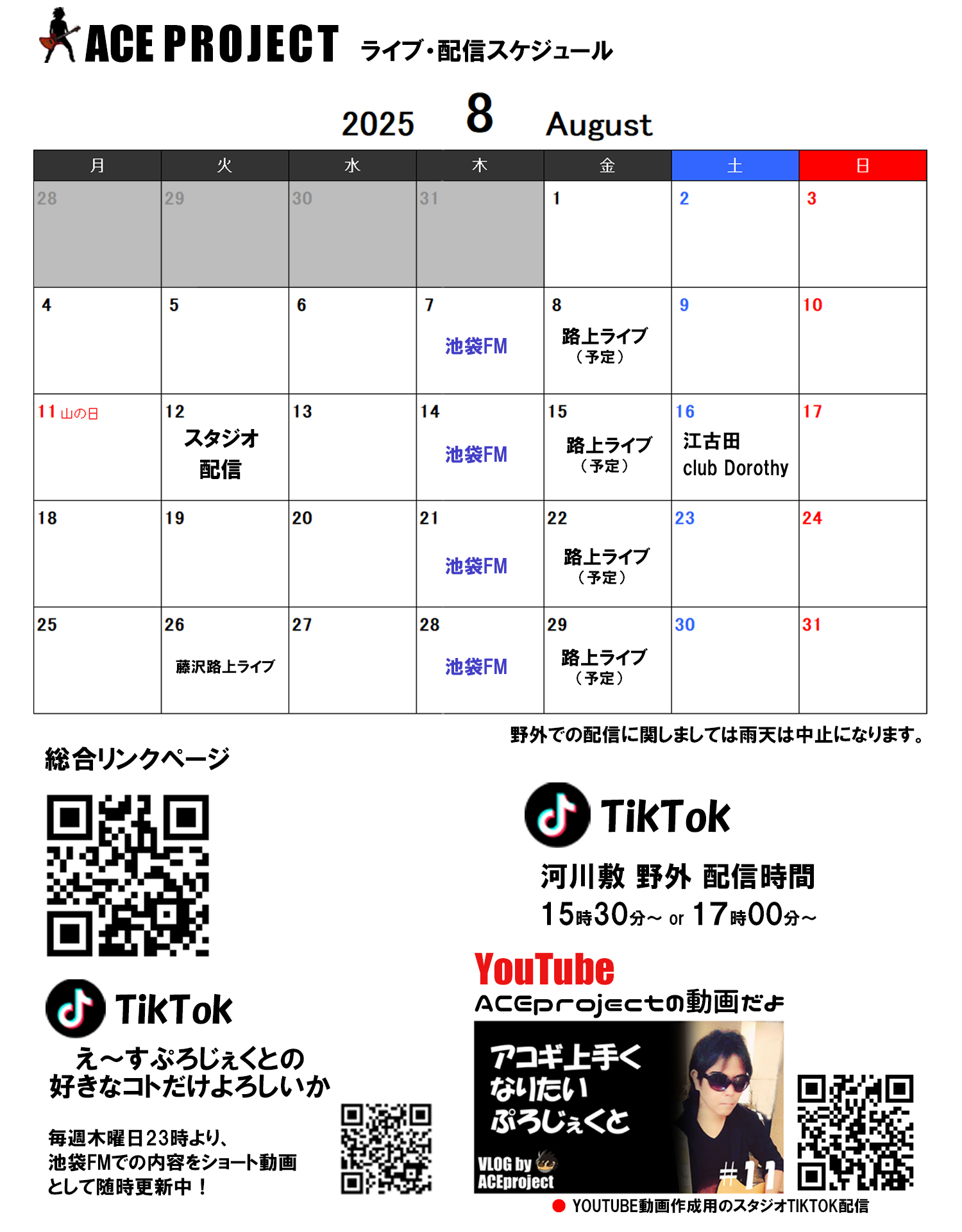 雨天時にはリハーサルも兼ねてスタジオにてTIKTOK配信いたします。