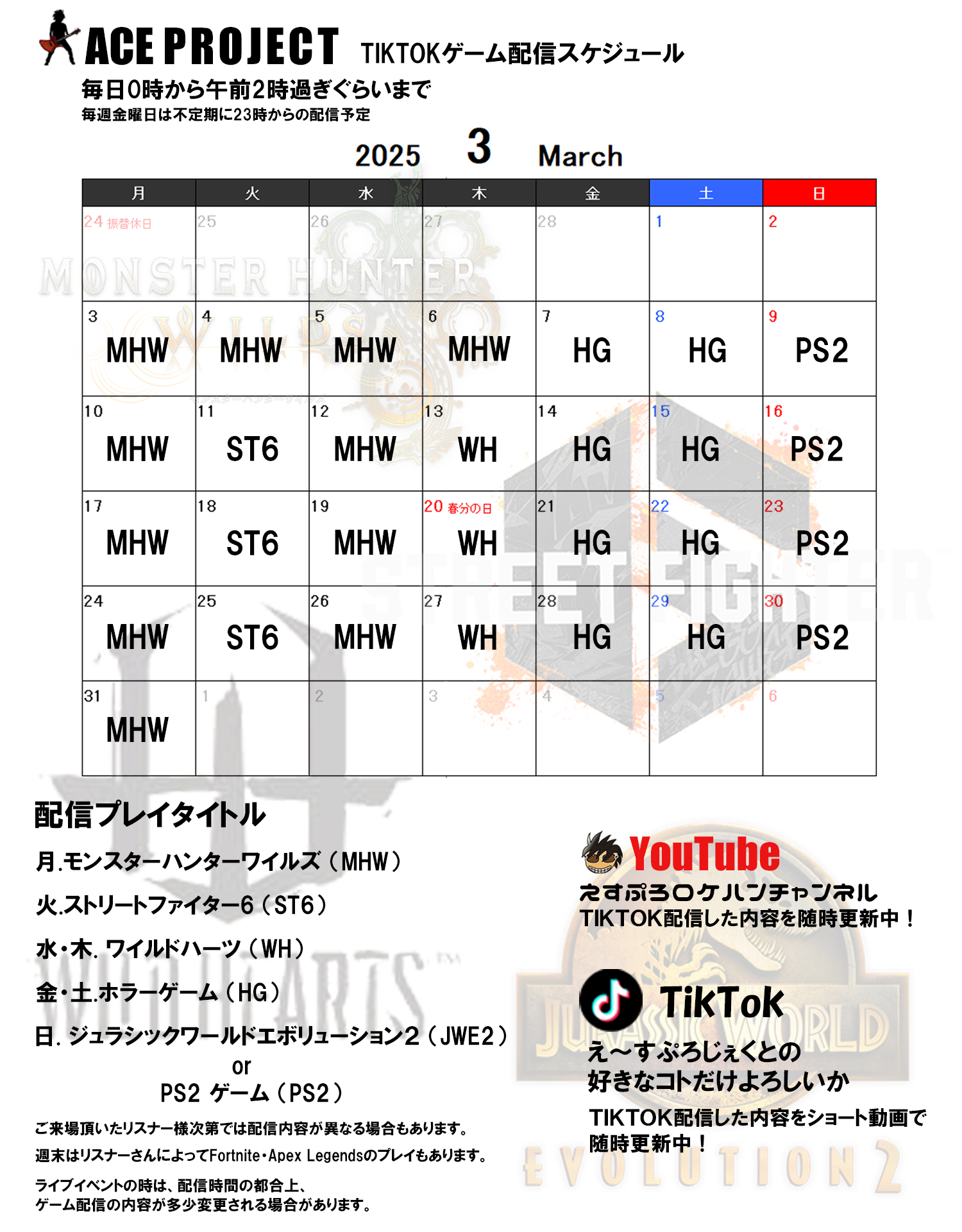 TIKTOK配信の内容を一部編集して随時更新しています。