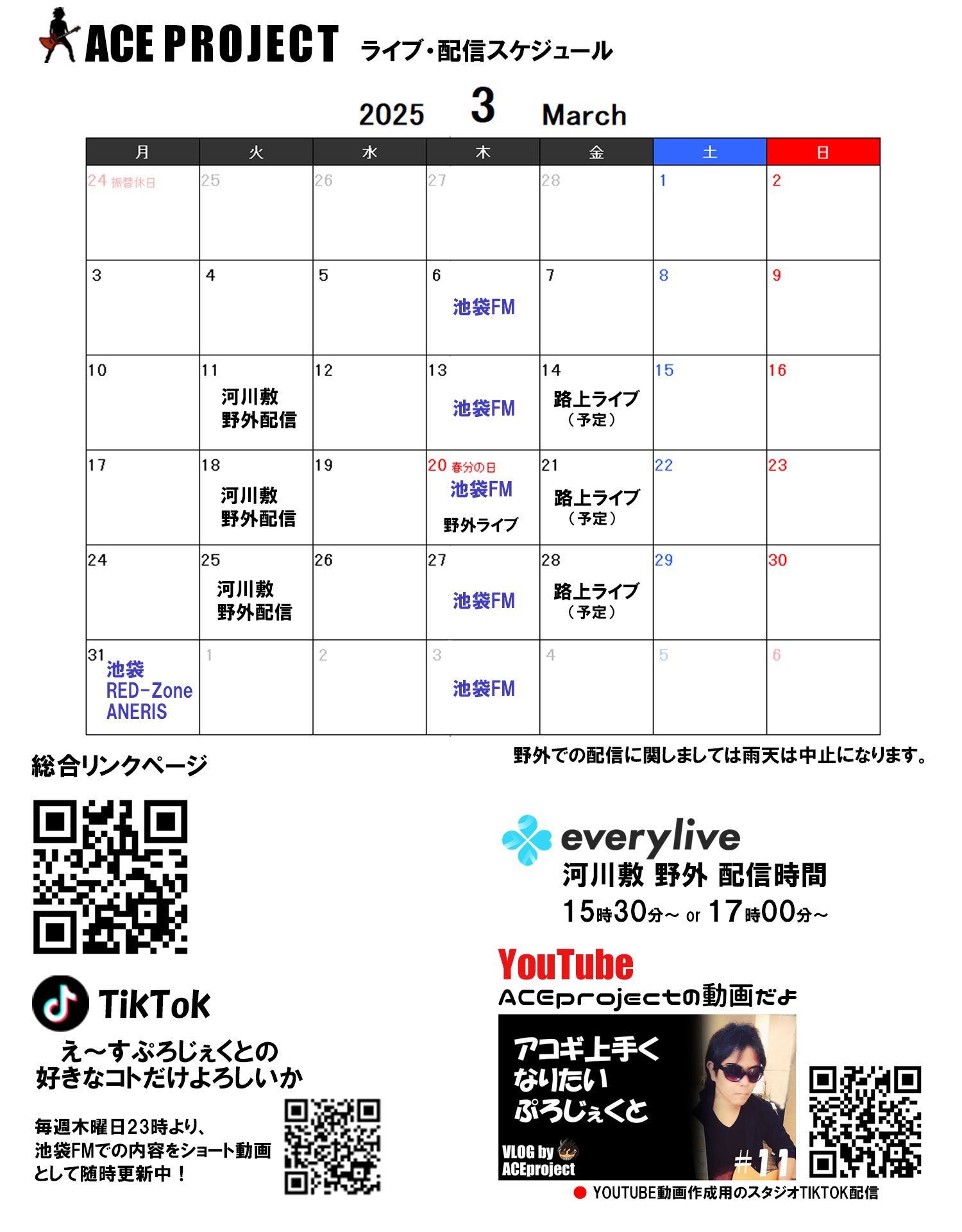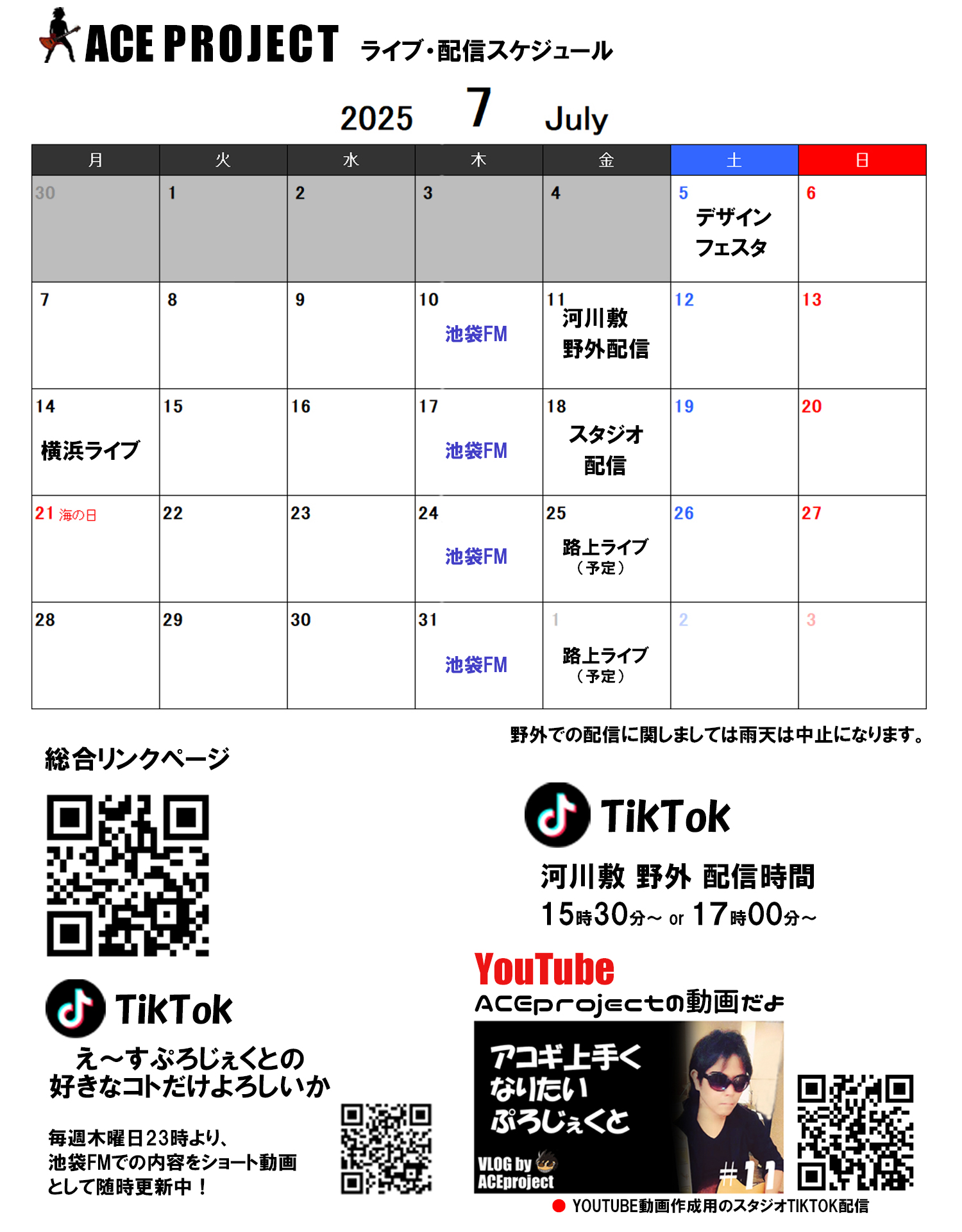 雨天時にはリハーサルも兼ねてスタジオにてTIKTOK配信いたします。