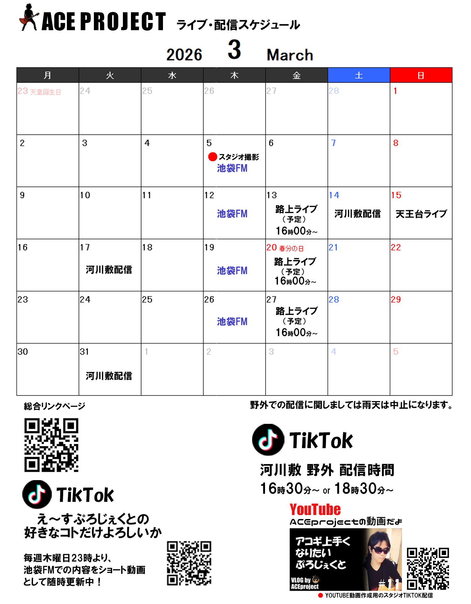 雨天時にはリハーサルも兼ねてスタジオにてTIKTOK配信いたします。